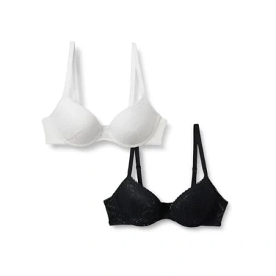 Amazon Essentials Women's Stretch All over lace Lined Push up Bra, Pack of 2, Black/White, 32B