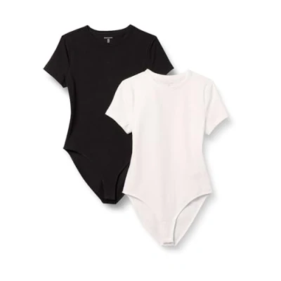 Amazon Essentials Women's Stretch Cotton Jersey Slim fit T Shirt Bodysuit, Pack of 2, Black/White, XS