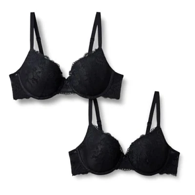 Amazon Essentials Women's Stretch Galloon Lace Full Cup Wired Bra, Pack of 2, Black, 34B