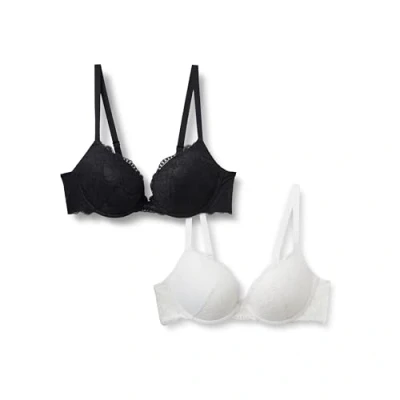 Amazon Essentials Women's Stretch Galloon Lace Push Up Wired Bra, Pack of 2, Black/White, 36D