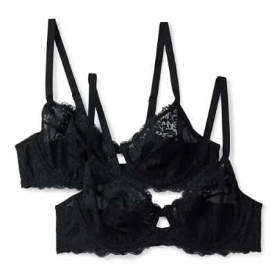 Amazon Essentials Women's Stretch Galloon Lace Wired Balconette Bra, Pack of 2, Black, 34B