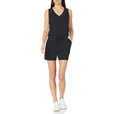 Amazon Essentials Women's Studio Terry Fleece Playsuit, Black, S