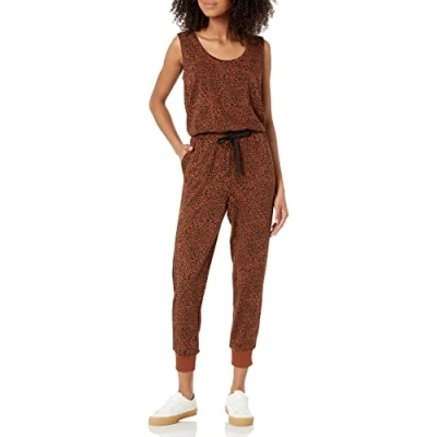 Amazon Essentials Women's Studio Terry Jumpsuit (Available in Plus Size), Black Brown Animal Print, S