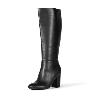 COMFORT AND FIT: These tall heel boots have a padded insole with high-quality memory foam for added comfort and an interior zipper for easy entry. MATERIAL: Amazon Essentials shoes are made from high-quality alternative leather materials. This style has a faux calfskin upper and is lined in canvas. STYLE: These boots have a modern block heel, turned seams without stitching, and a soft almond toe. DETAILS: 3 inch heel with a flexible non-slip sole. Shaft height measures 14.5 inches from where your heel sits to the top of the shaft. DESIGN: These versatile boots take you from day to night and can be paired with your favorite Amazon Essentials outfit.