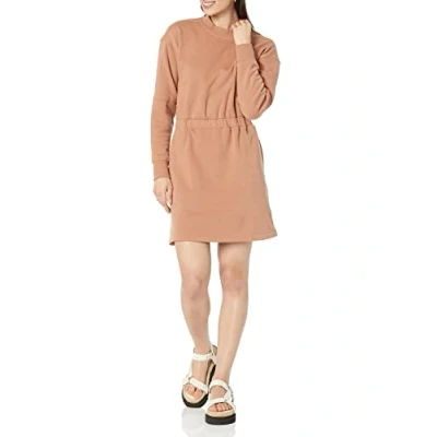 Amazon Essentials Women's Waisted Sweatshirt Dress (Available in Plus Size), Light Brown, S