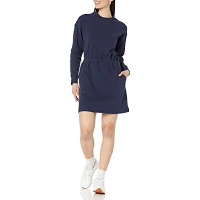 Amazon Essentials Women's Waisted Sweatshirt Dress (Available in Plus Size), Navy, XS