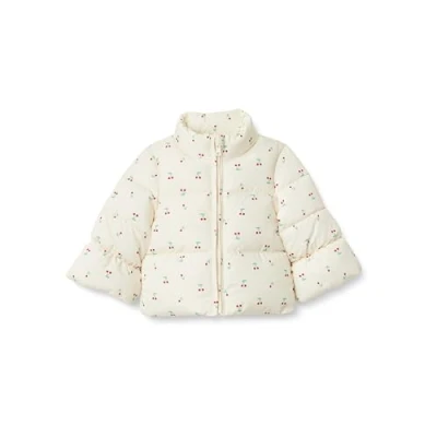 Amazon Essentials x Sofia Grainge Baby Girls' Taffeta Puffer Jacket, Ivory Cherries, 18 Months