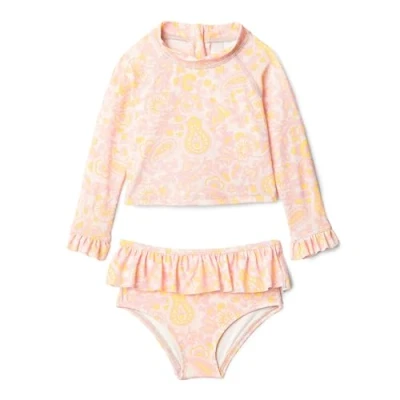 Amazon Essentials x Sofia Grainge Girls' 2 Piece Long Sleeve Rashguard Set, Pink Ornate Paisley, 3 Years