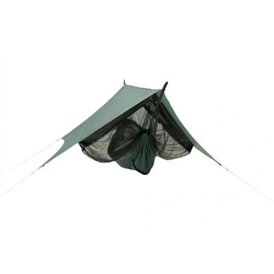 All-in-one set-up - The AMAZONAS Traveller Camp hammock offers a practical combination of sleeping space, extra large mosquito net and tarp. Perfect for outdoor adventures, protects them from insects, wind and rain. Easy to assemble - Thanks to the pre-assembled ridgeline and marked suspensions, the hammock can be quickly and effortlessly stretched between two trees. The included ropes and pegs fix the tarp securely to the ground. Heat protection and comfort - With a diagonal slip pocket for sleeping mats, the hammock offers optimal protection against cold from below. Suitable for all standard trekking sleeping mats, even thicker models up to 7 cm. Versatile - The Traveller Camp can also be used as a tarp or ground tent without a hammock. The flexible construction allows versatile uses in different outdoor conditions AMAZONAS GMBH - As a leading manufacturer of hammocks, our company has stood for the highest quality and sustainability since 1995. With our own production in Brazil, Poland and China, we value traditional craftsmanship and responsible manufacturing.