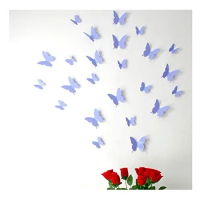 This kit of 12 butterfly wall decals comprises of the following: 6 big butterflies measuring 12x10 cm each, and 6 small butterflies measuring 7.5x6.5 cm each. Create the 3D effect by slightly folding the butterfly wings, then stick the butterflies to your wall using the double-sided tape at the back of each buttefly! Easy to stick together. No paste needed Does not damage your wall Quality wall stickers or decals