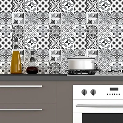 Ambiance Pack of 60 Tile stickers Self adhesive decorative wall decal Cement Mosaic bathroom and kitchen azulejos 15 x cm pieces