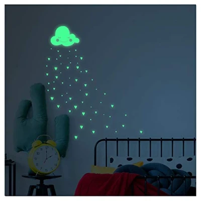 This sticker is composed of separate elements on a board measuring H20 x L25 cm. The cloud measures 25 x 17 cm and the large hearts 2 x 2.5 cm. This phosphorescent sticker must be exposed to light for 1 hour to shine for 5 hours. The sticker is a very thin vinyl printed on the top and high quality. Allows for precise installation of your sticker without forming air bubbles. Easy to apply: simply peel off the adhesive from the backing paper and place it on a dry, clean, smooth and non-porous surface. DURABLE AND RESISTANT: 5 year lifespan. High definition digital print. Non-flammable, non-toxic, no smell, resistant to high temperatures, scratches and water, no harsh or abrasive products. Clean with fresh water., Weight: 0.0440924524 Pounds, Manufacturer: Ambiance Sticker