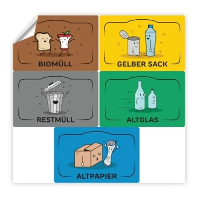 Ambiance Sticker Adhesive Recycling Stickers for and Separating Waste, Spanish Label Bin 5 Labels 8.5 x 5.5 cm.