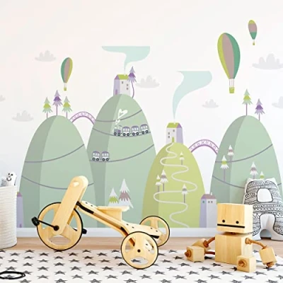 Ambiance Sticker Children's Wall for Baby Room Decoration Giant Adhesive Hot Air Balloons as Seen from The Sky H40 x L60 cm