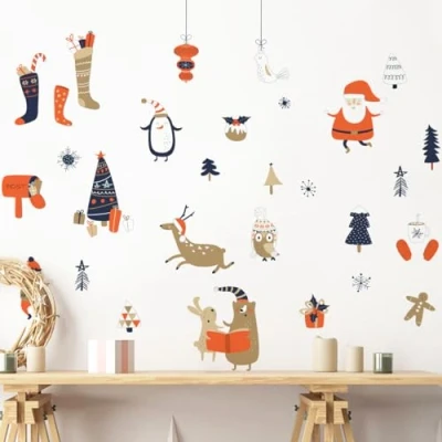 Ambiance Sticker Christmas Merry Self Adhesive Stickers Decoration for Bedroom and Living Room Santa His Animals H90 x L95 cm