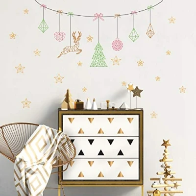 Ambiance Sticker Christmas Merry Stickers Adhesive Decoration Parties for Bedroom and Living Room Garland Origami H110 x L210 cm