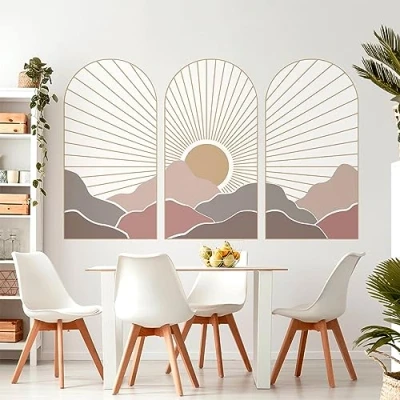 Ambiance Sticker Non Woven Wallpaper Pre Glued Giant Frescoes Trio d'Arches Sunset Asian Decorative Adhesive 90 x 135 cm