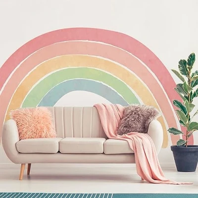 Ambiance Sticker Non Woven Wallpaper Pre Glued Giant Murals Rainbow Pastel Design Decorative Adhesive 150 x 120 cm