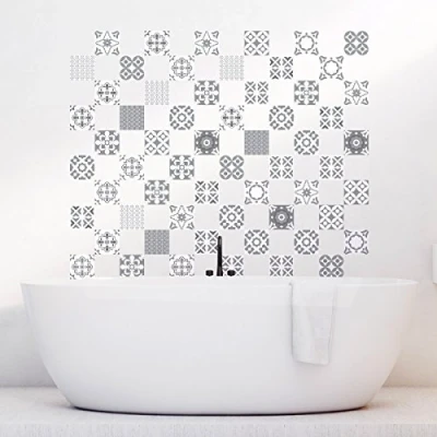 Ambiance Sticker Self Adhesive Decorative Wall Decal Cement Tile for Bathroom and Kitchen Artistique Nuance de Gris Pack of 60 Stickers 10 x cm
