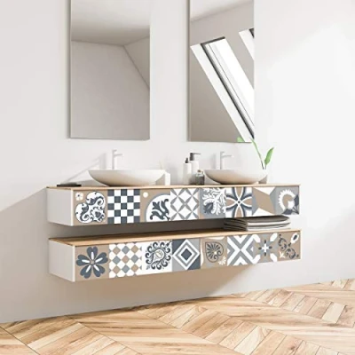 ✅ WALL VINYL: 60x90cm - 24 pieces of 15 x 15 cm imitation of pre-cut self-adhesive sticker tiles. ✅ QUALITY STICKER: The cement tile sticker is a very thin vinyl printed on the top. Allows for precise installation of your azulejos mosaic tiles without forming air bubbles. ✅ EASY INSTALLATION: the stickers are pre-cut. Simply peel off the adhesive from the backing paper and place it on a dry, clean, smooth and non-porous surface. ✅ DURABLE AND RESISTANT: 5-year lifespan. High quality photo prints, non-flammable, non-toxic, odourless, resistant to high temperatures, scratches and water, no harsh or abrasive products. Clean with fresh water. ✅ CUSTOMIZABLE DECOR: You have the possibility to arrange each piece in the way you want. This gives many ideas to decorate your home., Manufacturer: Ambiance Sticker