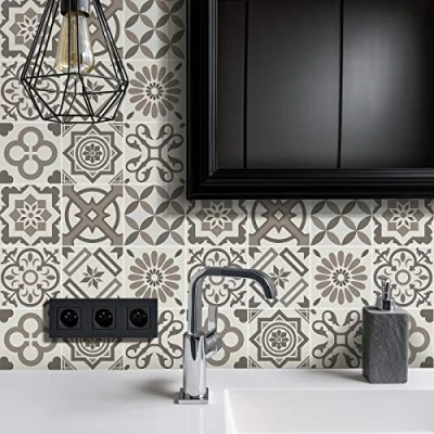 Ambiance Sticker Self Adhesive Decorative Wall Decal Cement Tile for Bathroom and Kitchen Cadix Pack of 9 Stickers 10 x cm
