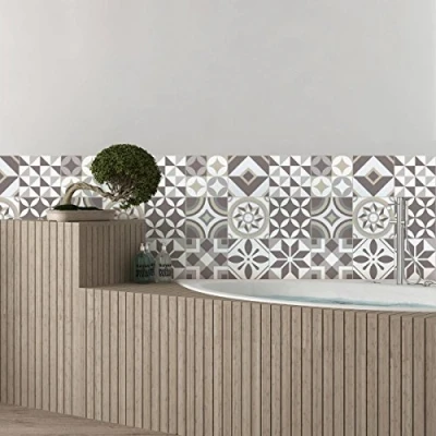 Ambiance Sticker Self Adhesive Decorative Wall Decal Cement Tile for Bathroom and Kitchen Géométriques Pack of 9 Stickers 20 x cm