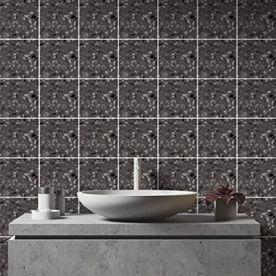 Ambiance Sticker Self Adhesive Decorative Wall Decal Cement Tile for Bathroom and Kitchen Isabella Pack of 24 Stickers 10 x cm