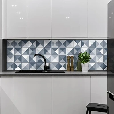 Ambiance Sticker Self Adhesive Decorative Wall Decal Cement Tile for Bathroom and Kitchen Nuances de Gris Géométrique Pack of 24 Stickers 10 x cm