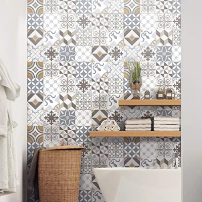 Ambiance Sticker Self Adhesive Decorative Wall Decal Cement Tile for Bathroom and Kitchen Ornements Folklorique Pack of 24 Stickers 10 x cm