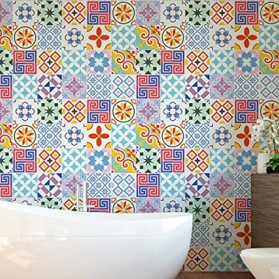 Ambiance Sticker Self Adhesive Decorative Wall Decal Cement Tile for Bathroom and Kitchen Ornements Folklorique Pack of 24 Stickers 15 x cm