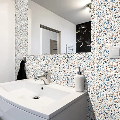Ambiance Sticker Self Adhesive Decorative Wall Decal Cement Tile for Bathroom and Kitchen Terrazzo Alexia Pack of 24 Stickers 10 x cm