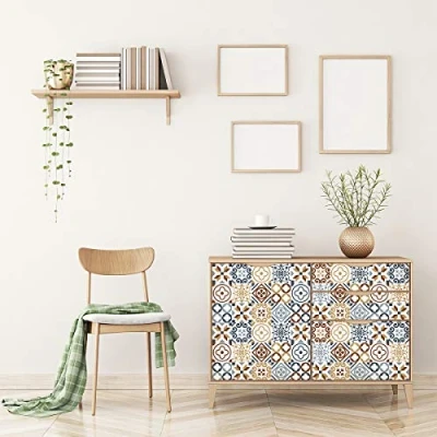 ✅ FURNITURE VINYL: 90x150cm - 60 pieces of 15 x 15 cm imitation of pre-cut self-adhesive sticker tiles. ✅ QUALITY STICKER: The cement tile sticker is a very thin vinyl printed on the top. Allows for precise installation of your azulejos mosaic tiles without forming air bubbles. ✅ EASY INSTALLATION: the stickers are pre-cut. Simply peel off the adhesive from the backing paper and place it on a dry, clean, smooth and non-porous surface. ✅ DURABLE AND RESISTANT: 5-year lifespan. High quality photo prints, non-flammable, non-toxic, odourless, resistant to high temperatures, scratches and water, no harsh or abrasive products. Clean with fresh water. ✅ CUSTOMIZABLE DECOR: You have the possibility to arrange each piece in the way you want. This gives many ideas to decorate your home.