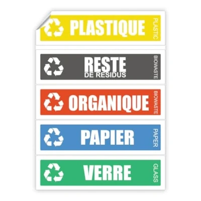 Ambiance Sticker Self Adhesive PVC Labels Flexible Recycling Bin Waterproof Washable for Selective Waste Management 5 15 x 4 cm
