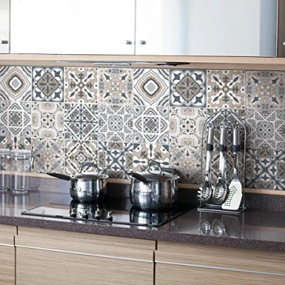 24 Self-Adhesive Tile Stickers 10 x 10 cm Imitation Cement Tiles Excellent quality: new printing technology, modern and unique design, new trend to decorate your home. Create your kitchen, bathroom or toilet with our adhesive tiles in imitation cement tiles. Easy installation: allows you to precisely install your Azulejos mosaic tiles without the formation of air bubbles. The stickers are pre-cut. The application is therefore simple, simply remove from the paper and place on a smooth and clean surface. Original decoration: create originality thanks to the wall stickers with earthenware tiles and its beautiful colour palettes, original prints or colourful designs. You can arrange each of the 24 pieces in the way you want. Which gives many ideas to decorate your home. Durable and hard-wearing: lasts for more than 5 years. Quality photo prints, non-flammable, no smell, resistant to high temperatures (-40 to 85°C) to scratches and water, no harsh or abrasive products. Clean with fresh water.