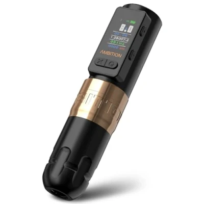 High Quality Machine: Ambition soldier max wireless tattoo machine is made by aluminium alloy, its length is 132mm, weight is 186g. Exquisite appearance, comfortable to hold and balanced weight. The whole piece can be disassembled, allowing artists to clean each part in different ways. HD Color Screen: This tattoo gun is configured with HD color screen which can show startup mode, voltage, timer, billing, Hertz and frequency.The billing function can automatically calculate the total charge based on the working hours by adjusting the charge amount per minute. The machine has two startup modes, J means 8V jump start, S means normal start. The jump start makes the machine can push large magnum tattoo needles. Multifunctional Battery: The capacity of the long battery is 2400mAh, its battery life is 8-10 hours. The short battery is 1800mAh, the battery life is about 6 hours. Two working modes are set, frequency mode and regular mode. The frequency mode has 50 different levels that can be adjusted. It gives the machine the ability to do more tattoo work. Direct Drive: This tattoo pen is custom coreless motor ,speed 13,000rpm/12V. Compatible with our straight drive bar, makes the machine always keep low noise and low vibration.The straight bar has small resistance during operation, stronger power, and less damage to the skin. 4.0mm stroke guarantees the ideal balance between lining and color packing. Advanced Stabilization System, two built-in bearings enable the machine to strike accurately during operation and the needle hits more firmly. Package Included: Ambition rotary battery tattoo pen machine includes 1pc Battery Tattoo Pen(Battery Capacity:2400mAh), 1pc extra 4.0mm stroke cam, 1pc RCA adapter, 1pc USB fast charging data cable, 1pc Box.