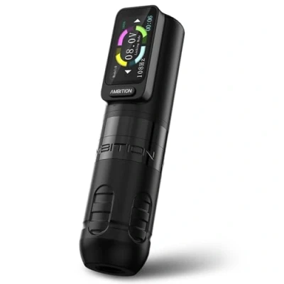 Size: Ambition tattoo machine built from aluminium alloy for a light weight; length:132mm/5.19 inches,diameter:34mm/1.33inches, weight:213g/7.51oz. Portable, it has minimal vibration, give the tattooist better control and less fatigue. Brushless Motor: The tattoo pen powered by brushless motor, the brushless motor greatly prolongs the service life of the machine, drive with low vibration and less noise; Motor speed 8V 10000RPM. Low voltage with higher speed and torque. Battery: The screen displays the machine's working voltage, remaining power, Hertz and timer. Battery capacity is 2400 mAh, voltage is 4.5-12V, one battery can work for 8 hours. Automatically lock the screen 3 minutes after power-on, swipe up to unlock. Straight Bar Drive Stroke Cam: Rotary tattoo machine equipped with a 4.0mm straight drive bar stroke cam, it offers powerful hitting, less resistance and less skin loss, takes shading and color packing to be more efficient and a whole new level. Package Include: 1 X wireless tattoo machine, 1X extra 3.5mm stroke cam, 1X RCA adapter head, 1X RCA clip cord,1X power cord,1X zipper box.
