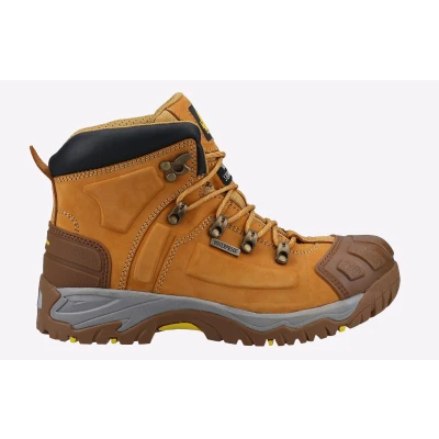 The FS33 is a Flexible and Rugged Waterproof Safety Boot with a leather upper, an anti-penetration steel midsole and a steel toe cap. - Water Resistant Full Grain Nubuck Leather Upper- Internal Waterproof Membrane- Moulded Rubber Toe Guard for Extra Durability- Moulded Rubber Heel Counter for Enhanced Heel Support and Protection- Padded PU Collar for Extra Comfort- Leather Pull on Tab- Comfortable, Cushioned and Removable PU Footbed- Phylon Midsole Enhances Comfort and Shock Absorption- Rubber Outsole Heat Resistant to 300 Degrees- Oil Resistant Outsole