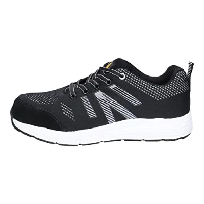 AmazonSteel toe cap for enhanced safety Energy-rebounding EVA rubber midsole for added comfort Flexible composite protection against nails and debris Ideal for warehouse and stockroom environments Fly knitting upper material and lace-up closure for a snug fit