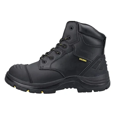 Unisex tough and durable waterproof metal free safety boot. Crafted with water resistant leather and composite toe cap. Excellent Ladder grip Rubber sole heat resistant to 300 deg. Twin Padded PU Collar and Removable PU Footbed. EN ISO 20345:2011-S3 - Tough and Durable Waterproof Metal Free Safety Boot- Excellent Ladder Grip Outsole- Twin Padded Collar and Removable PU Footbed- 200 Joules Fibre Glass Composite Toe Cap- Anti-Penetration flexible composite Midsole - Min 1100N- Energy Absorbent Heel- Antistatic and Oil resistant Outsole- TPU Heel Support and Scuff cap for Extra Durability- Internal waterproof membrane- Rubber Outsole Heat Resistant to 300 Degrees