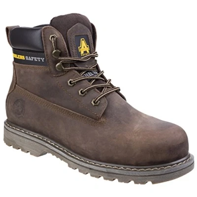 AmazonHardwearing industrial safety boot with Goodyear Welt construction. Steel toe cap and steel midsole. Padded ankle collar with pull-on loop. Goodyear welted rubber sole for great strength and durability Three main eyelets and two speed lacing hooks.