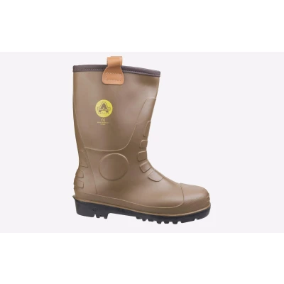 Stay warm and dry throughout your outdoor workday with the FS95 Amblers Rigger Safety Boot, featuring a waterproof PVC upper and sole, faux fur lining, soft leather rim with pull loops, and ribbed metatarsal and heel features for impact and compression resistance. - Waterproof PVC upper - Steel toe cap - Anti-static material - Textile lined boots - Penetration resistant steel midsole - Energy absorbing heel - Slip resistance