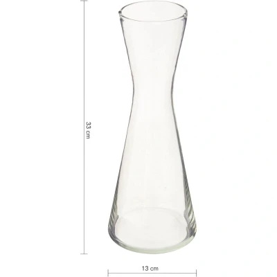 ManoManoGeneral description This gracefully shaped clear glass carafe with curved sides is ideal for serving wine, juices, or beverages. Its minimalist design with a narrow neck is easy to hold and ensures a drip-free pour.