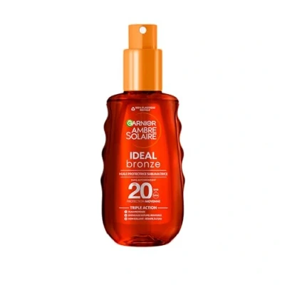 FPS20 High Protection Sublimation Tan Protective Oil Ideal for All Skin Types Results: The natural tan is sublimated, the skin is instantly protected from UVA, UVB rays. Application: Spray the spray into your hands before applying. Avoid the eye area. Apply before sun exposure. Renew application frequently, especially after swimming, sweating or drying. Self-tanning free formula, very water resistant to sand and sweat, non-greasy and non-sticky finish Box contents: 1 x FPS20 Garnier Sun Amber Ideal Bronze Sublimation Protective Oil 150 ml