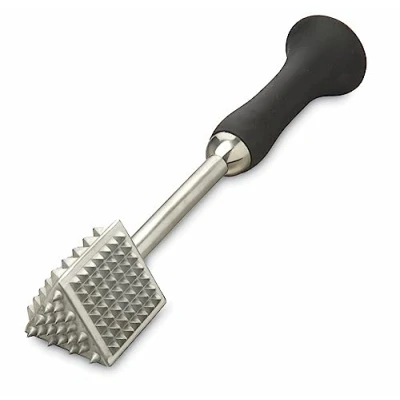 Tenderise, pound and marinate all types of meat, fish and poultry with this 1 ingenious tool It also has a smooth side to flatten fillets into escalopes, and a spiked end to pierce meat and help marinades penetrate more quickly Made of robust metal with a comfort-shaped handle, so it makes light work of tenderising and won't strain your hands FLATTEN FILLETS: the smooth side is great for flattening poultry into escalopes or making schnitzel Hand-wash only