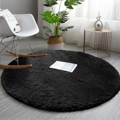AMEHA Round Rugs Living Room Black Area for Bedroom 120x120 cm Anti Slip Modern Super Soft Thick Pile Fluffy Shaggy Rug Plush Carpet Non Shedding Easy to Clean