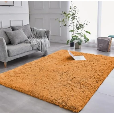 AMEHA Rugs for Bedroom Modern Ochre Area Living Room, Hallway Runner Non Slip Super Soft Fluffy Shaggy Pile Rug Shedding Easy to clean, 80 x 150 cm