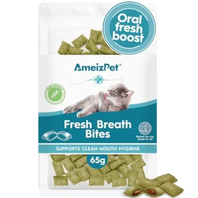 AmeizPet Fresh Breath Cat Dry Food, Freshener Treats, Treats for Indoor Cats Crunchy Biscuits 65 g (2.3 oz)