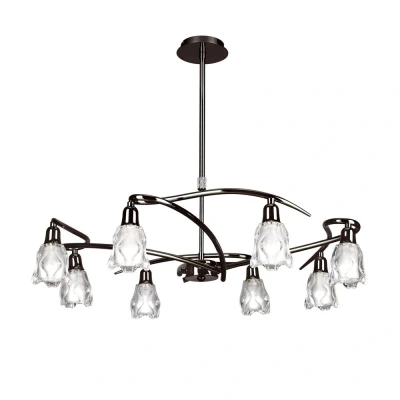 Modernize your decor with the Amel Telescopic 8 Light fixture in black chrome. Its sleek finish and frosted shades deliver stylish illumination, perfect for adding a contemporary touch to your indoor spaces.
