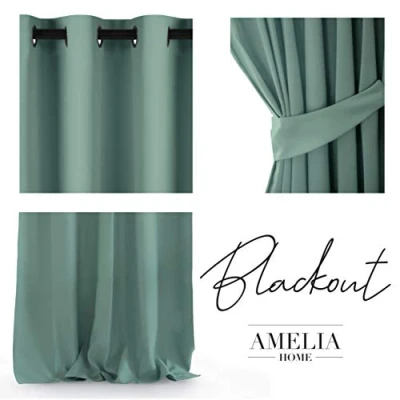 AmeliaHome Blackout Curtain 140 x 245 cm Opaque Polyester Mint