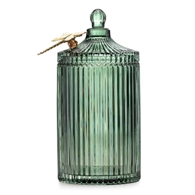 AmeliaHome Glass Storage Box with Lid Cosmetic Dragonfly 10.5 x 20 cm Bottle Green